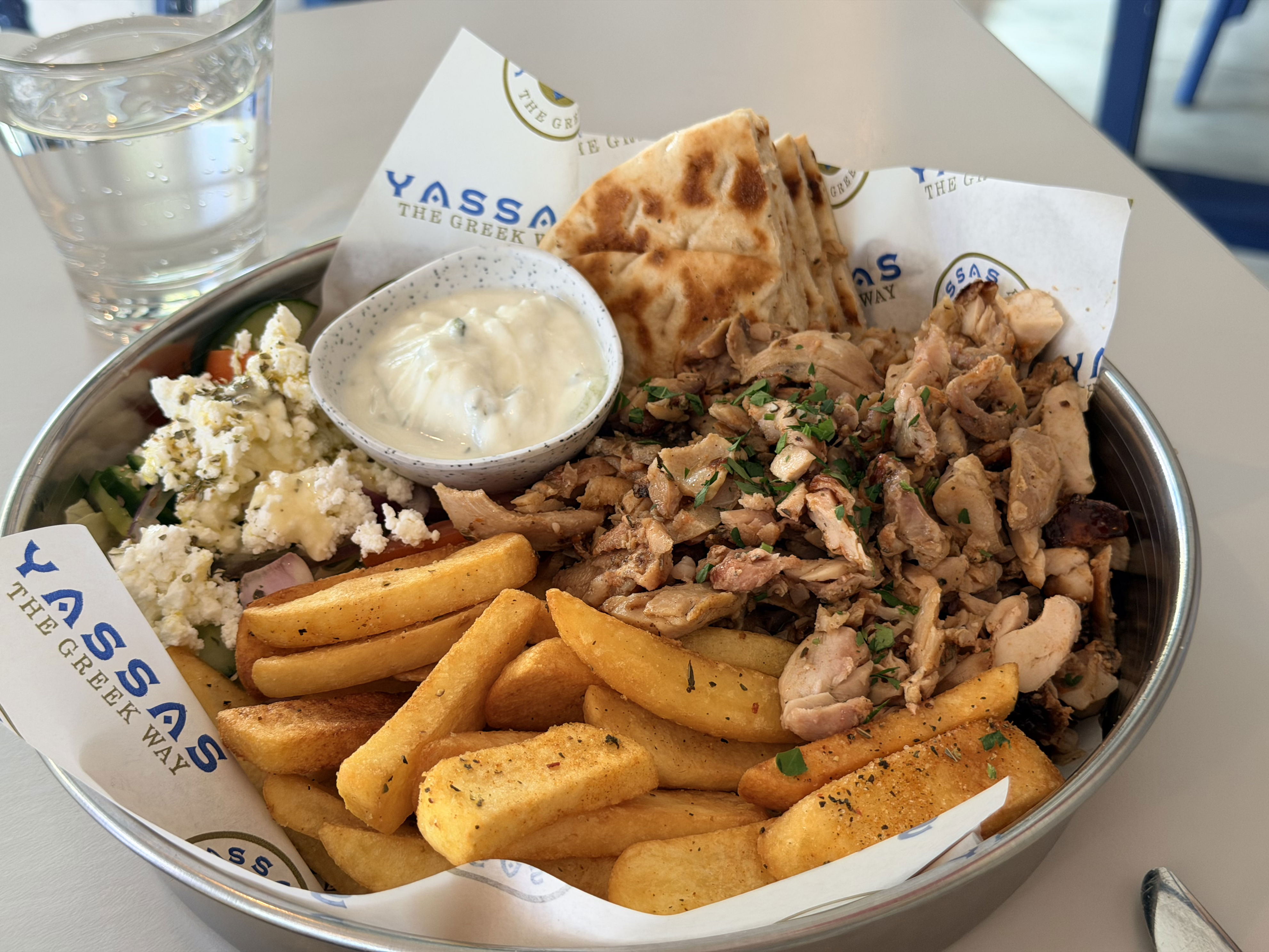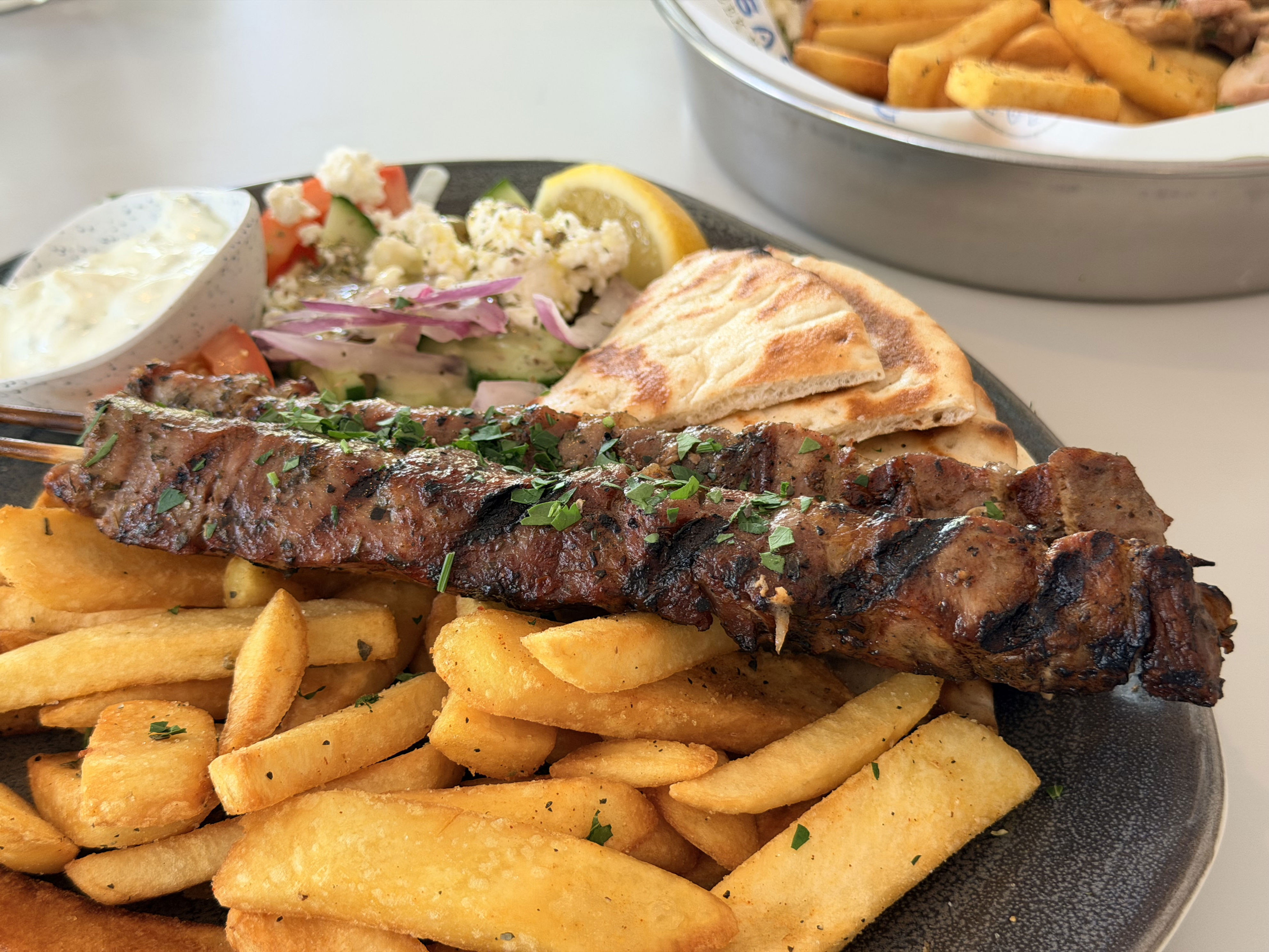 于是在逛完维多利亚国家艺术馆后,我们去了雅拉河边的一家希腊餐厅,两个人各点了一份套餐,分量大的吃不完,烤串和鸡肉的味道都不错。