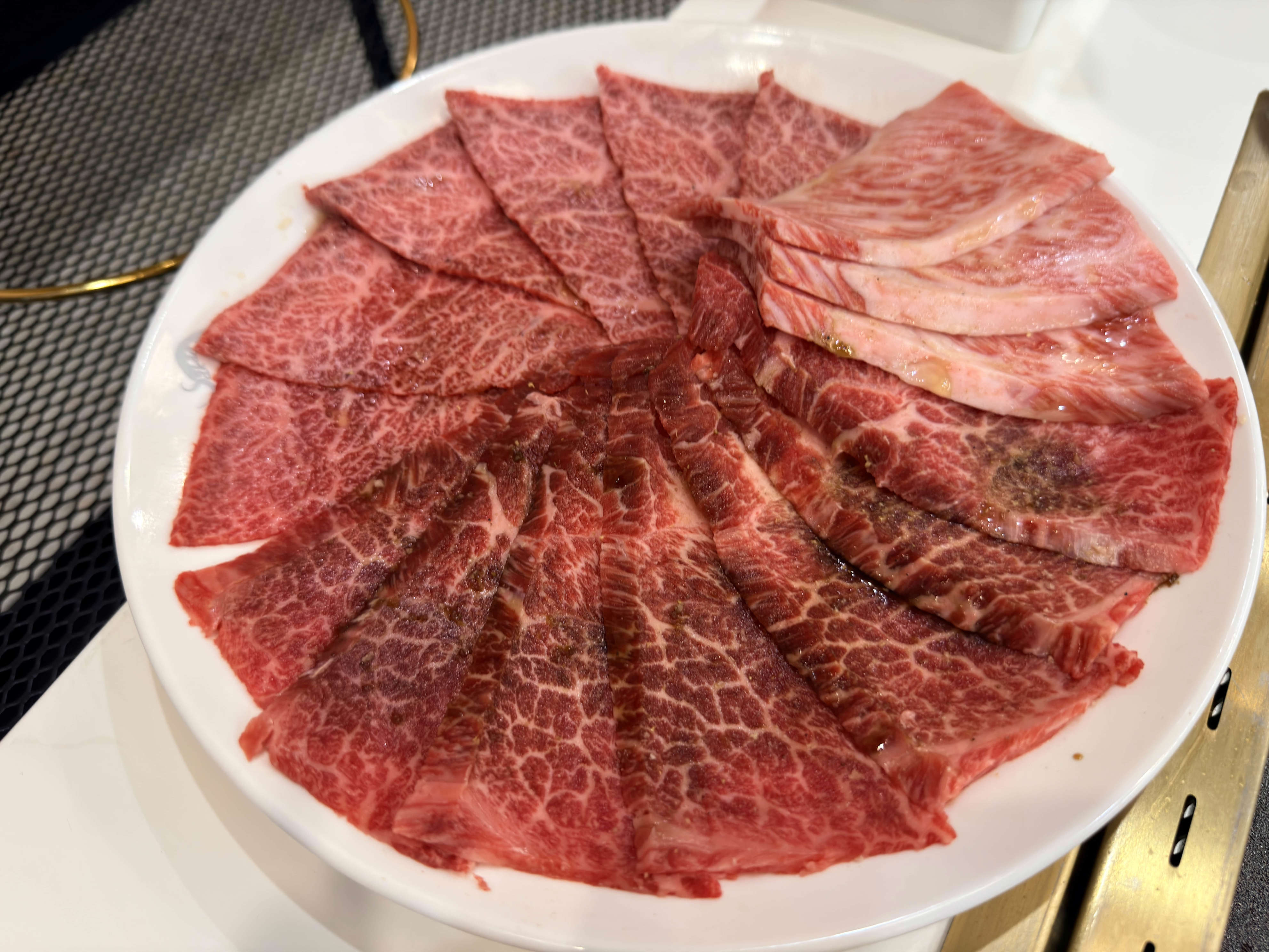 晚饭则找了一家市中心的和牛烤肉 Sakae En,125 澳元的套餐就可以吃到一份 M7+M9 的烤肉拼盘和一份和牛涮锅,肉的品质很高,真的是太满足了。
