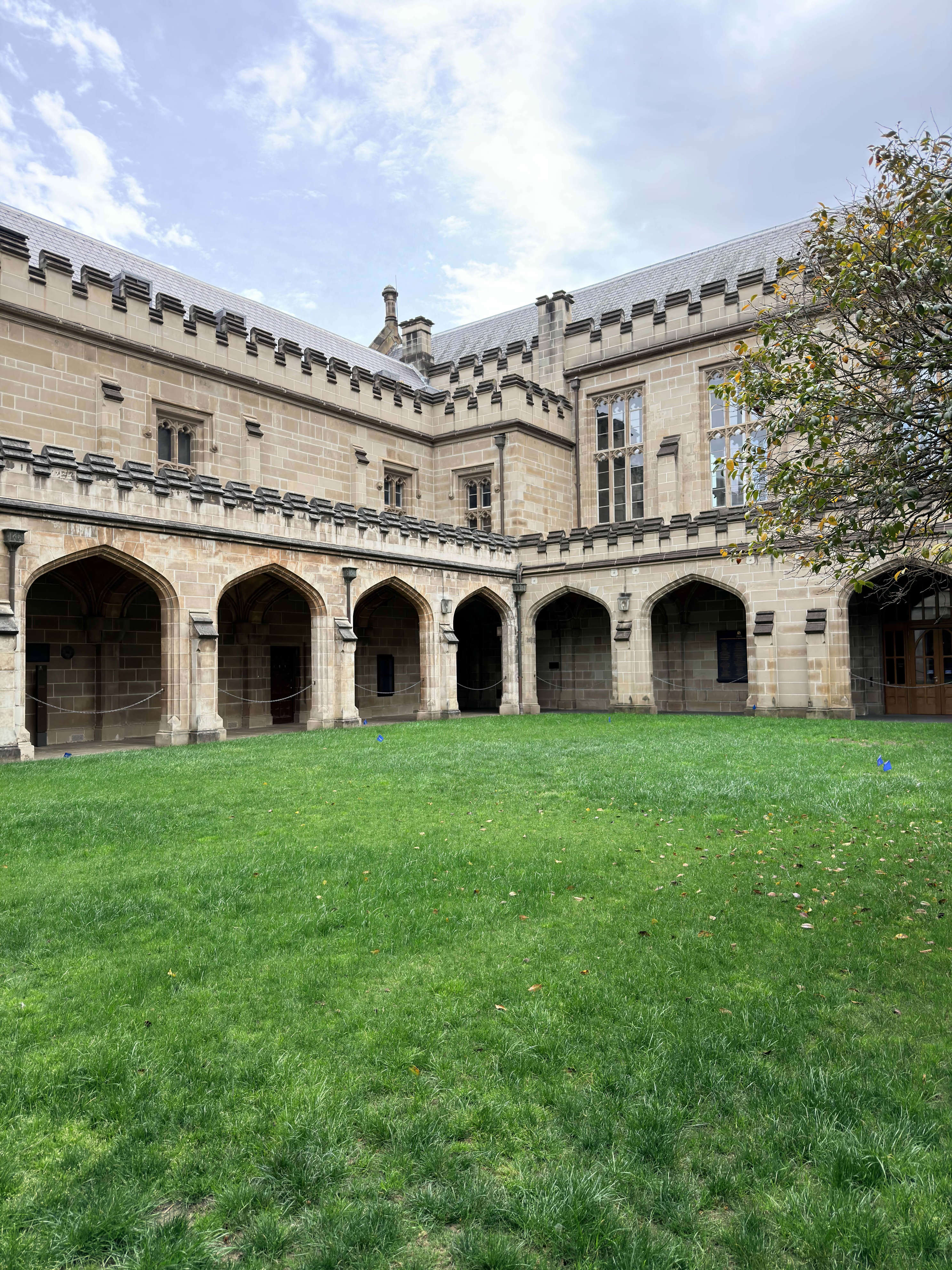 下一站,我和桃总决定去墨尔本大学沾点学霸们的欧气。说到这里我不禁想吐槽一下墨尔本的电车:我从国内带了一张之前用过的 Myki 卡,结果充值的时候告诉我这张卡过期了。没办法,我只能又重新花了 12 澳元买了两张新的 Myki 交通卡,各充了 20 澳元进去,结果这几天下来,我从来没见过一个人刷卡。就算是在 free zone 之外的站台,也只有我和桃总在老老实实刷卡。