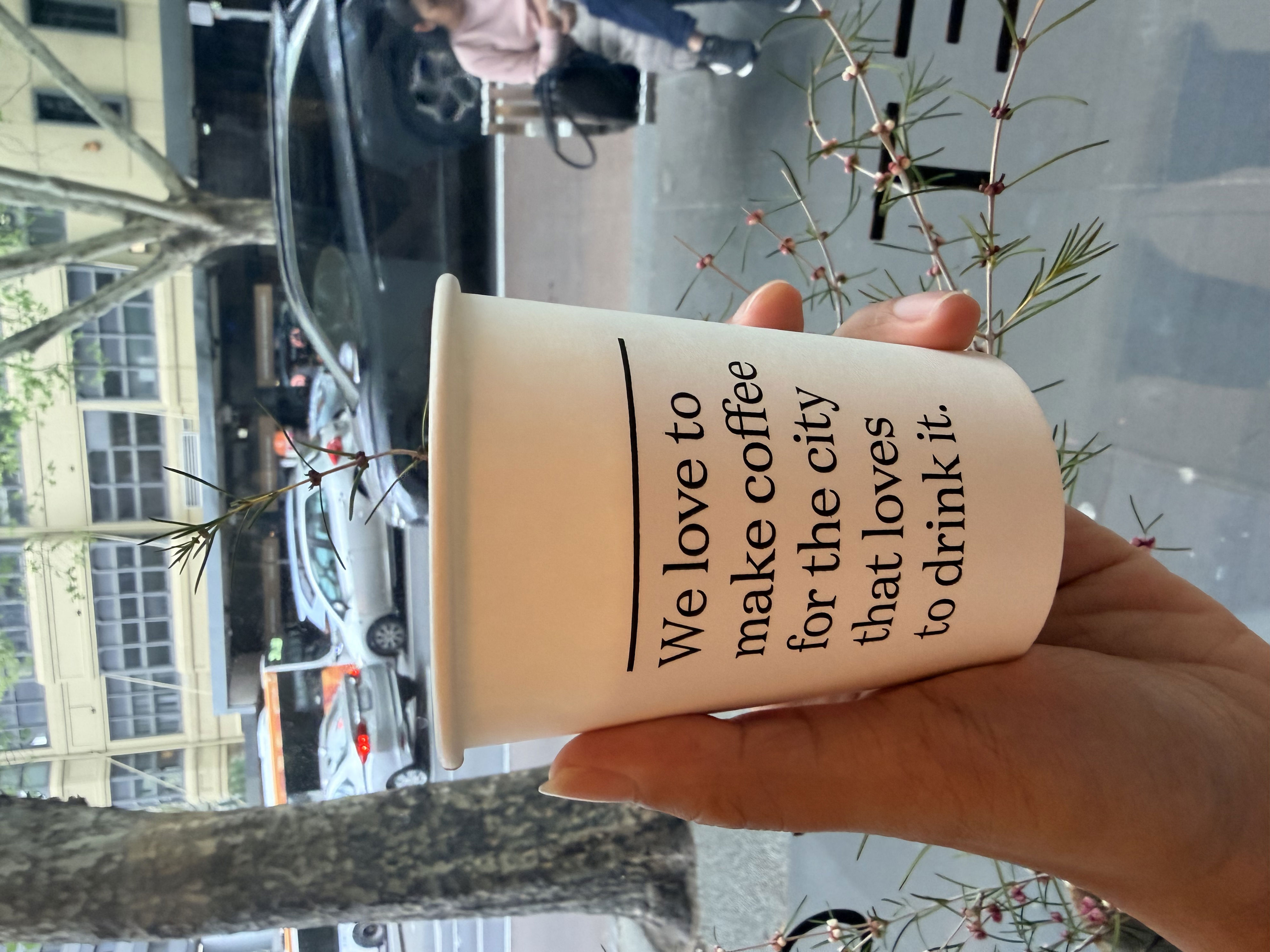 回酒店的路上我们在 Market Lane 又喝了一杯咖啡,咖啡中规中矩,但是印在咖啡杯上的这句话引起了我的好感。