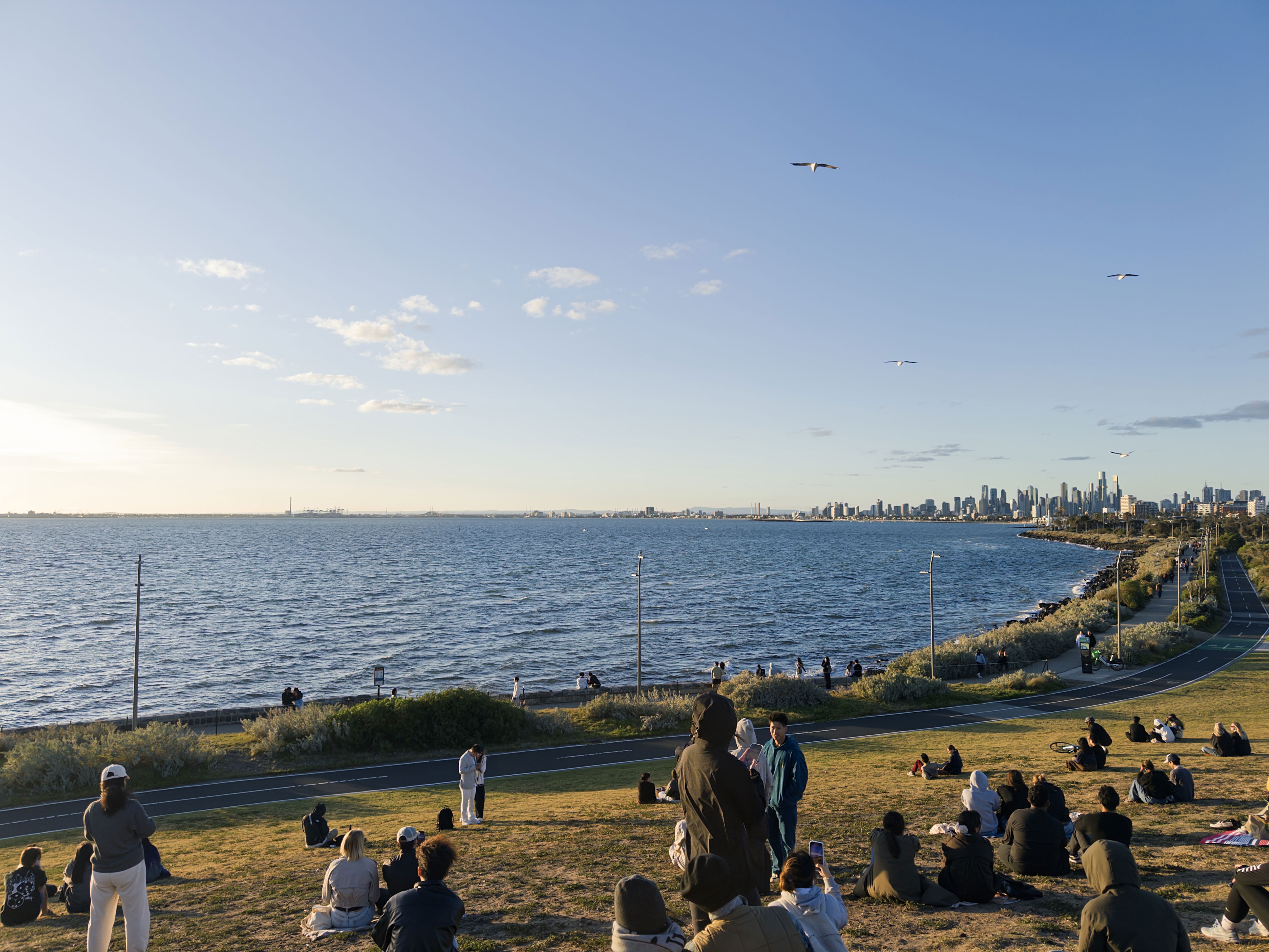 赶在去机场之前,我们还打车去了一趟 Point Ormond,在这里可以看到墨尔本城市天际线在美妙的日落时分下的美景。看着夕阳下在草地上打滚的小狗,沿着海岸线跑步的跑者,坐在沙滩上的情侣,甚至是山坡上如织的游客,都成了这场日落表演的重要组成部分。感谢这场日落,给我们的澳大利亚之行完美的谢幕。