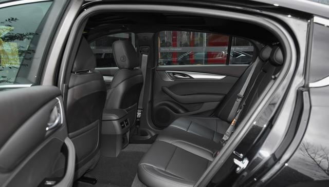 凯迪拉克CT5定位中型轿车,其车身长宽高分别为4930mm、1883mm、1453mm,轴距长度为2947mm,标准中型车的尺寸,虽然后驱车会压缩车内的空间,但是实际的体验还是比较宽敞,就拿我来说,身高1米8、体重80kg,坐在前排将座椅调整到一个合适的位置,来到后排,无论是头顶还是腿部空间都非常宽敞,缺点就是后排地板中间有着较高的隆起,满载的时候坐在中间的用户会有些局促。